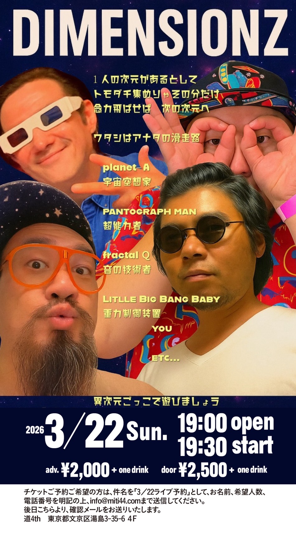 [ゴンドウトモヒコ]3月22日(日)「DIMENSIONZ『異次元ごっこで遊びましょう』」湯島に出演