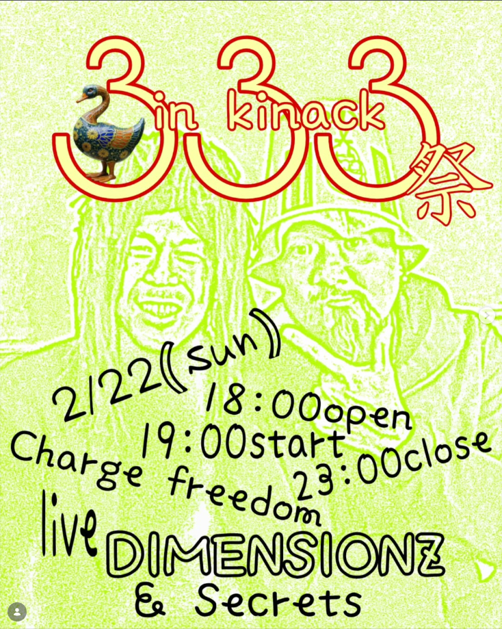 DIMENSIONZ『333祭』 日時 2026年2月22日(日) 開場 18時00分 開演 19時00分 終演 23時00分場所 稲荷町kinack (東京都台東区元浅草2-10-12 2F)料金 ¥Charge Fr… Read More →